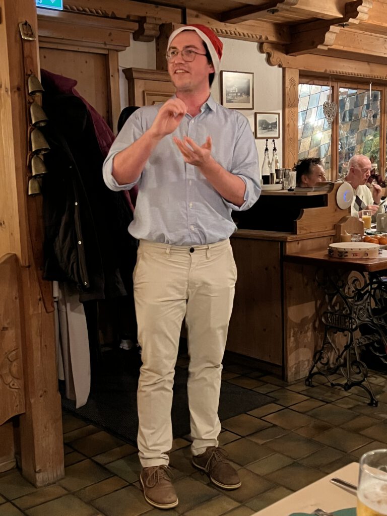 Angeregte Gespräche in wechselnden Zusammensetzungen und gemeinsam gesungene Lieder schlossen sich an, auch wurden noch die Rückrundenaufstellungen der sieben Tischtennismannschaften diskutiert. So war es in Summe wieder eine überaus gelungene Weihnachtsfeier, die das Gemeinschaftsgefühl der Mitglieder der Tischtennissparte weiter gestärkt hat und die bestimmt auch 2026 eine Neuauflage erfahren wird. Vielen Dank den Organisatoren – insbesondere Michael Huber und Sigi Wacker seien hier genannt – und den Kulturvortragenden, die diese Weihnachtsfeier erst ermöglicht und so fabelhaft gestaltet haben!