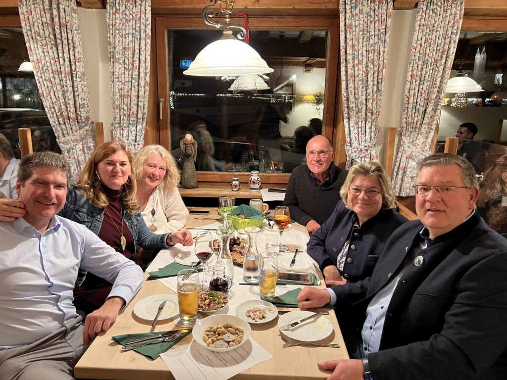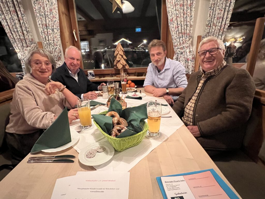 Mit fortschreitendem Abend rückte das sehnlich erwartete Festessen allmählich in den Mittelpunkt des Interesses. Zwiebelrostbraten, Schnitzel „Wiener Art“, Rinderroulade, Bauernente, Forelle und Spinatknödel standen bei den Hauptgerichten zur Auswahl, nachdem die kulinarisch sehr lecker bestückten Brotzeitbrettl zuvor schon den ersten Hunger gestillt hatten.